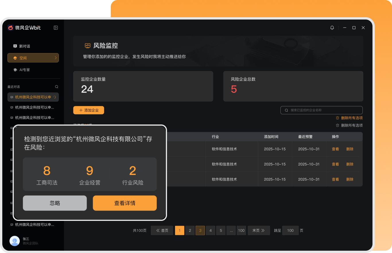自动巡检多维度风险,5分钟生成报告;拥有19个维度、128类字段及衍生手段,输出评分与可执行建议
